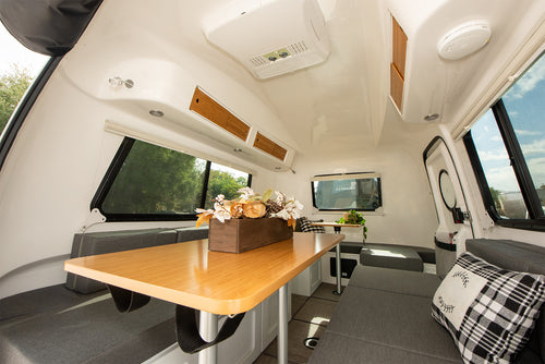 The A4V floors and other pieces are made with 100% fiberglass double hull handcrafted shells, honeycomb fiberglass floor grid, custom hardware, and custom durable components. Fiberglass exhibits less expansion and contraction due to heat or cold than alternative materials, it's flexible, and has a remarkably high strength-to-weight ratio. This means our fiberglass lightweight campers are designed and built to last generations.