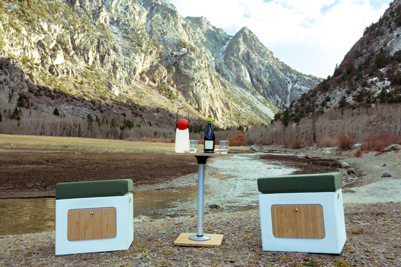 Lightweight table bases allow for you to take the dinner party to the fireside. The rugged Adaptiv cubes with cushions and tabletops create the perfect setup for game time or the campsite. Portable and stackable, the kitchenette system makes cooking outside a more convenient experience.